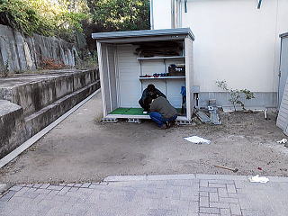 | 平成26年10月25日 おやじの会の3人で,三津田高校にある野球部の倉庫を修理しました。 |